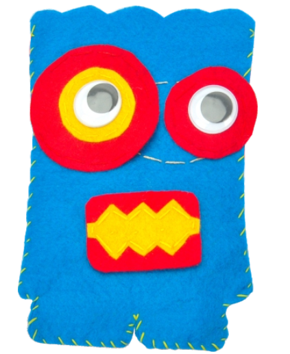 After checking the function of the circuit, it’s time to customize your big eye Eva. Adding felt over the lilypad pieces can hide the boards. Using non-conductive sewing or embroidery thread cover all but 2 inches at the right and left of the big eye circle; we will plug battery box or usb cable in this two opening.