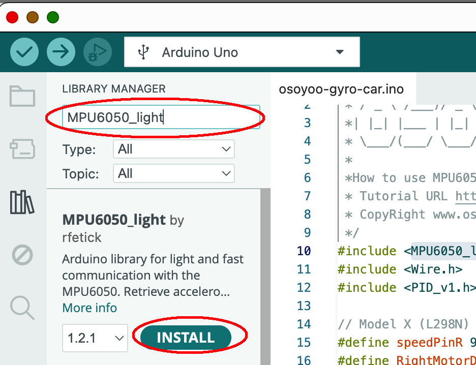 Click Install, then Install ALL to install MPU6050_light library.